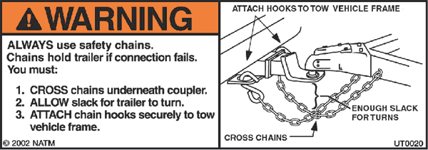 Improper rigging of the safety chains can result in loss of control of the trailer and tow vehicle, leading to death or serious injury, if the trailer uncouples from the tow vehicle.
